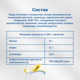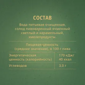 вода питьевая очищенная, солод ячменный светлый и карамельный, сахар, ячмень пивоваренный, хмелепродукты.