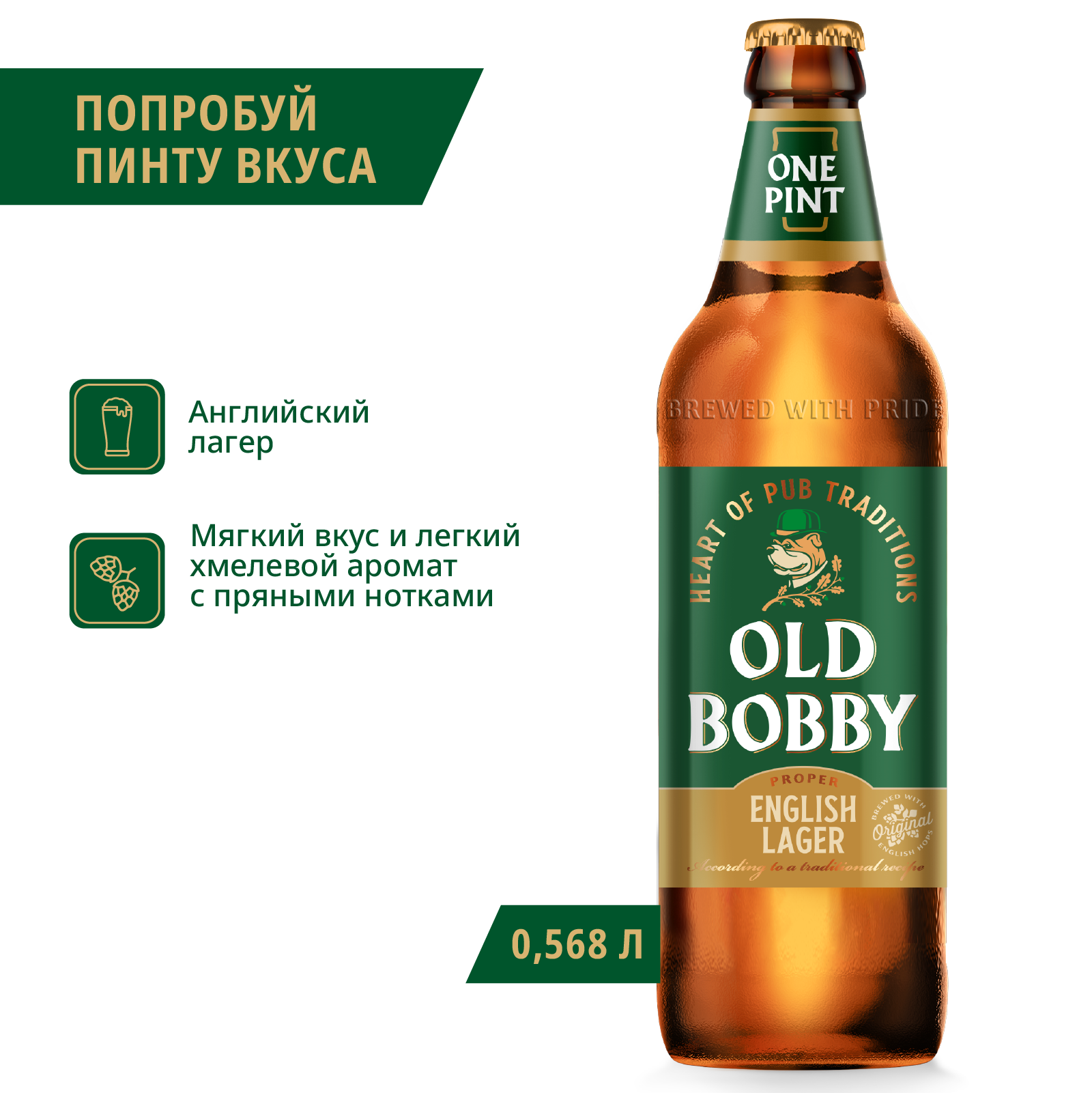 "Old Bobby Lager Бутылка 0,568 л – лёгкость и свежесть в каждой капле!