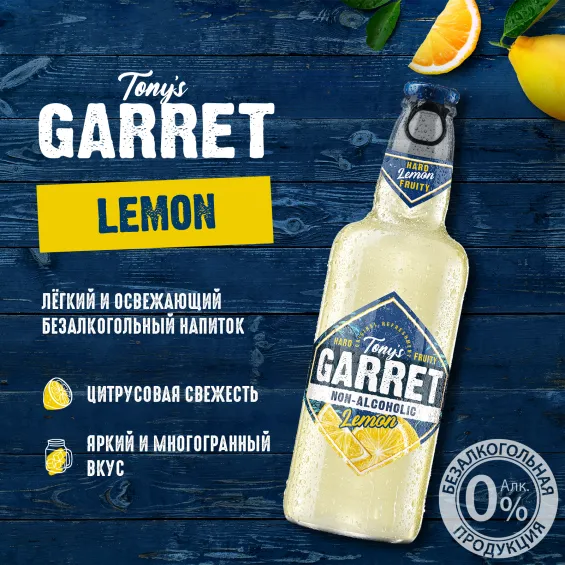 Фруктовый безалкогольный пивной напиток с освежающей лимонной кислинкой во вкусе